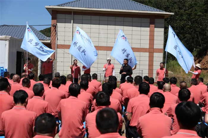 全體員工在教練帶領(lǐng)下,到達(dá)紅色基地培訓(xùn)中心,舉行了隆重的拓展開(kāi)營(yíng)儀式。