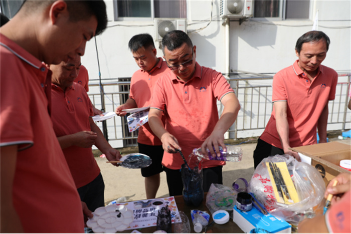在激烈的團(tuán)隊(duì)競(jìng)賽后,活動(dòng)來(lái)到共繪藍(lán)圖環(huán)節(jié),8個(gè)小隊(duì)分工協(xié)作,在納斯卡巨畫(huà)上描繪了“十年兼程,筑夢(mèng)前行”的活動(dòng)主題圖案。