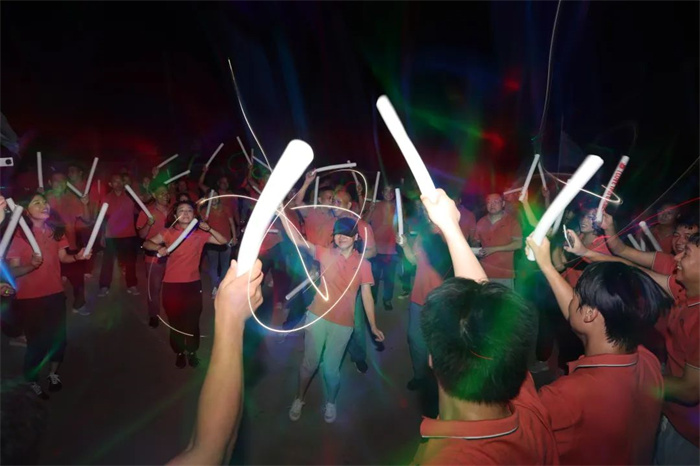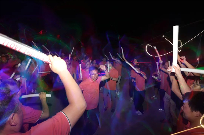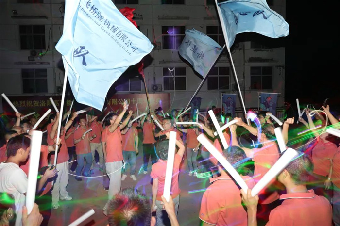 晚上的篝火晚會(huì),公司三位領(lǐng)導(dǎo)共切高飛股份十周年生日蛋糕,伴隨著歡快的生日歌及100發(fā)加特林的同時(shí)燃放,點(diǎn)燃了整場(chǎng)晚會(huì)。激情的音樂(lè),跳動(dòng)的旋律,使得大家都忍不住的律動(dòng)起來(lái),共同慶祝了這個(gè)美好的時(shí)刻。